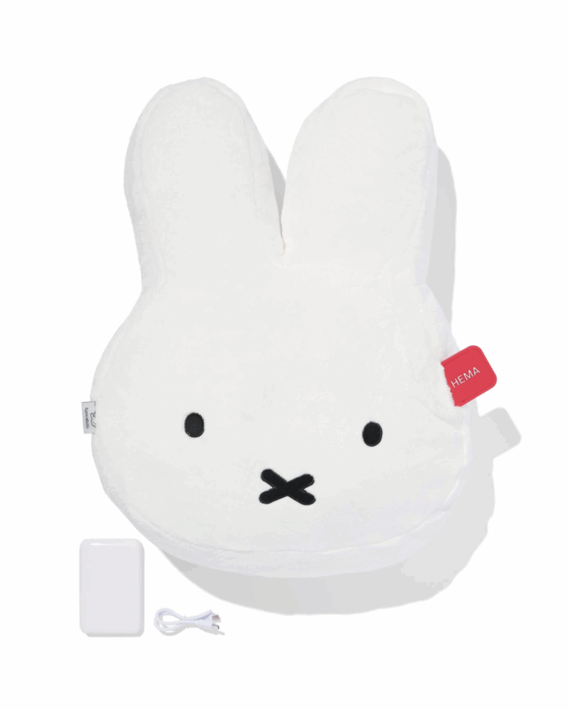 Het Hema verwarmingskussen Nijntje is niet alleen schattig om te zien, maar ook super praktisch. Je klikt hem aan, kiest een van de warmtestanden en binnen een paar minuten voel je de warmte al. Ideaal voor koude voeten, een stijve nek of gewoon dat extra beetje comfort op de bank. En omdat hij er zo leuk uitziet, hoef je hem na gebruik niet eens op te bergen. Alleen even opladen af en toe.